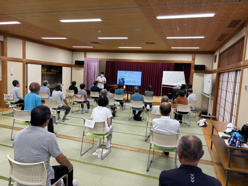 いきいきプラザに通われている方23名に対してウォーキングの仕方、方法について講義。